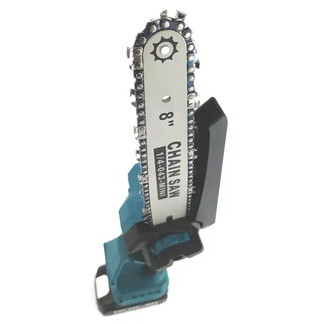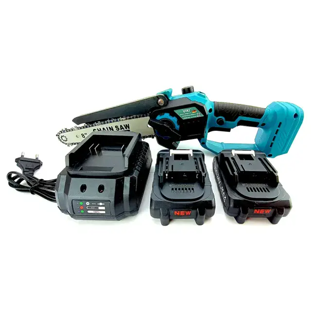 Акумулаторен верижен трион за дърва с автоматично смазване на веригата. Отличен за работа в градината. Малкият размер позволява подрязване на труднодостъпни места. Силна мощност, дълъг живот и трайна продукция. Нехлъзгаща се дръжка, удобна амортизация, ергономичен дизайн. Защитна дъска за предотвратяване на пръскане на дървесни стърготини. Висококачествена водеща, дълбоко закалена верига има по -висока устойчивост на износване и гладък ефект на рязане. Защитни от прах отвори за разсейване на топлина, ефективно разсейване на топлината, без изгаряне. Спецификация: Скорост на празен ход: 2000 (об/мин). Нетно тегло: 0,9 (кг). Пълна дължина: 42 (cm). Дължина на шината: 8″. Включва: 1бр. верижен трион, 1бр. ръководство, 1бр. верига 1бр. инструкция, 2бр. батерий 24V3Ah, 1бр.зарядно устройство, 1бр. куфар, 1бр. масльонка.