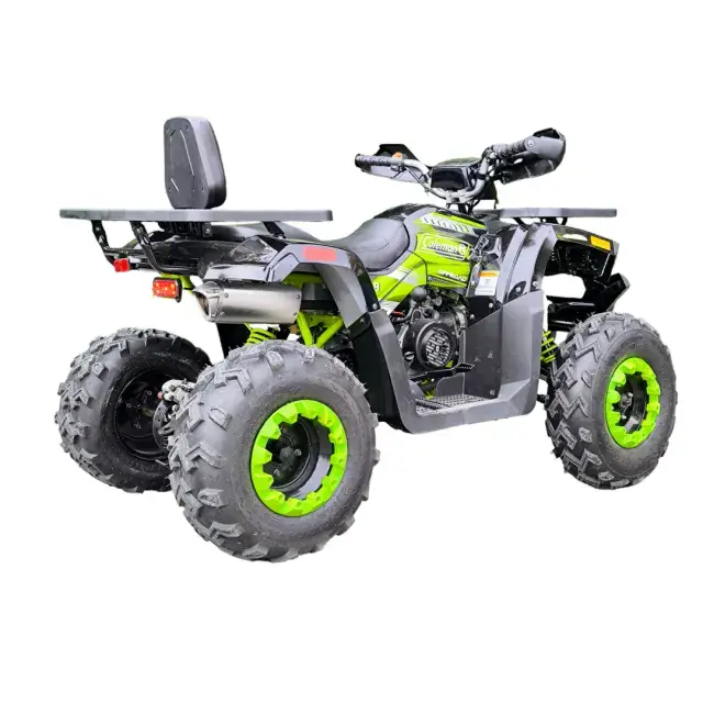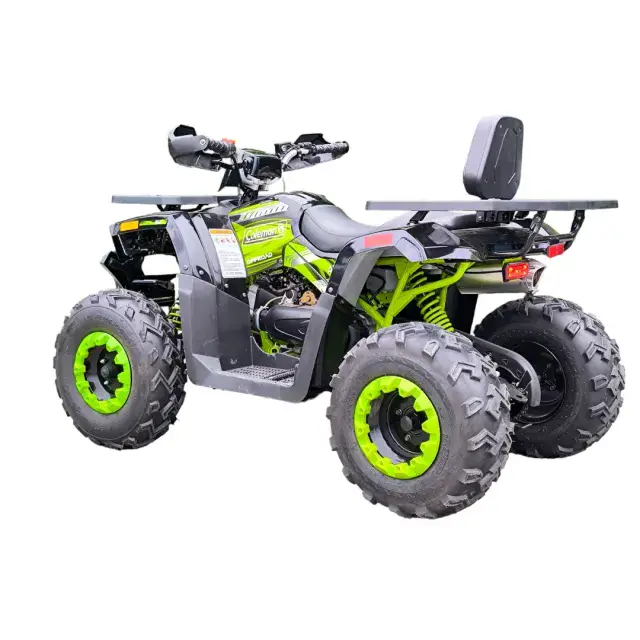 НОВ МОДЕЛ Бензиново ATV 200cc MaxMotors Coleman Powersports. Разполага с уникални лед-фарове, които осигуряват супер видимост при нощно каране. АТВ-то е високо проходимо и преудолява доста стръмни терени и препядствия, въпреки че е само с задно предаване. Машината ви предлага качество и удобство на дълги и къси разстояния. Снабдено е с автоматична трансмися, което предполага че може да се ползва както от възрастни, така и от деца.