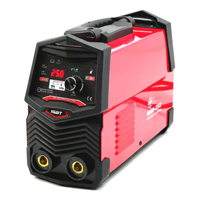 Инверторен заваръчен апарат HT MAX с дигитален дисплей 250 ампера. Висок клас подсилени транзистори. Електрожените от серия HT MAX са микропроцесорни заваръчни апарати за електродъгово заваряване с функций за неръждавейка и различни видове метал, притежават отлични способности за продължителна работа. Микропроцесор за финна настройка на заваръчния ток и най-добра работа, пред останалите машини в подобен клас на нашия пазар. Гарантирано заваряване с всички видове електроди с дебелина до 5 мм. включително.