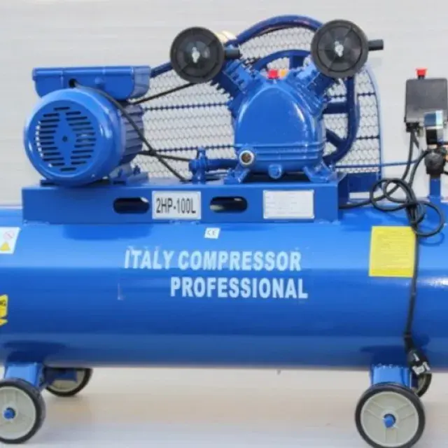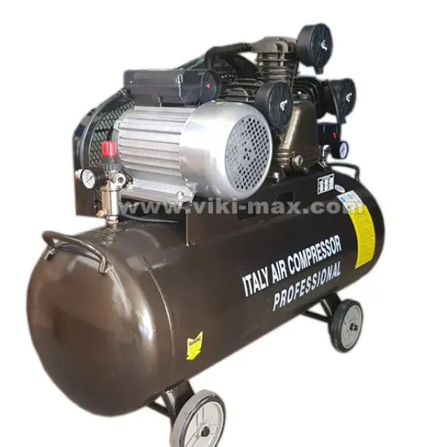 Компресор за въздух тип „ITALY“ с обем на съда 100 литра, три глави и мощност от 3 Нр – 2,2 kW – висок клас версия с подобрена работа на електромотора и нов модел пресостат.Без аналог на пазара.С колела и удобни дръжки за лесно транспортиране. Компресорът е създаден да генерира и съхранява въздух под налягане за инструменти работещи с въздух. Предназначен е за хоби потребители, както и за сервизна дейност. Технически данни: Захранване: 230V/50Hz, Тип компресор: Маслен, Мощност: 2.2 kW, Максимално налягане: 8bar. Обем на съда: 100 литра, Дебит на въздуха: 480 л/мин, Регулиране на налягането: 1 манометър.Стандартна бърза връзка – два броя.Ниво на шума: 97 dB, Тегло: 90 кг. Гаранционен и следгаранционен сервиз. Две години пълна гаранция.