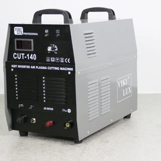 Кабел маса. Действие с дистанционно палене 3 дюзи 3 циркониеви електрода 2 керамични шапки за плазмата. Mанометър за конденз и налягането. В резултат на специални свойства, като по-висока скорост и прецизност на контрол дават на устройствата отлично качество при рязане. VIKI CUT 140 е машина за индустрията, занаятчийски и частни работилници и други.