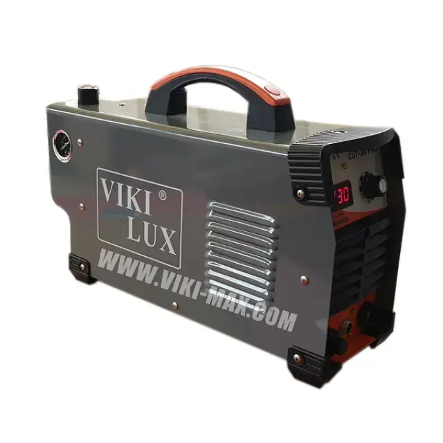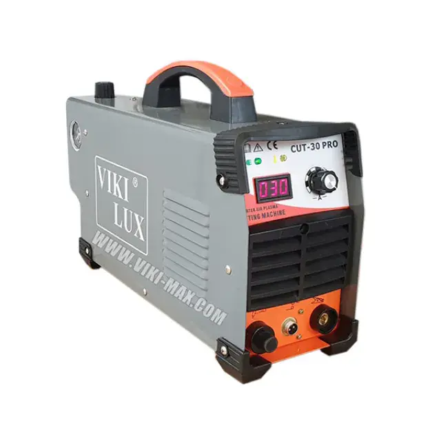Апарати за плазмено рязане – монофазни 230V/50/60Hz. Предпазител 16A. Мощност 30 ампера. Регулиране на ампеража 10-30 A. Рязане на метал и алуминий. Бързо охлаждане с вентилатор. Голяма производителност. Необходим въздух минимум 2.5-3 бара. Тегло 7 кг. Плазмен апарат VIKI LUX CUT 30 е с уникален лесно подвижен шланг за овалните форми. Кабел маса. Действие с дистанционно палене 3 дюзи 3 циркониеви електрода 2 керамични шапки за плазмата. Вграден манометър за конденз и налягането. В резултат на специални свойства, като по-висока скорост и прецизност на контрол дават на устройствата отлично качество при рязане. VIKI CUT 30 е машина за индустрията, занаятчийски и частни работилници и други. През последните 8 години, повече от 5000 плазмени устройства са били използвани в различни ситуации на работа. Лесно използване, стабилност и точност. Гаранция за рязане на най-високо ниво. Устройството идва с пълна окомплектовка. Вие трябва само да го свържете в тока и с компресор.