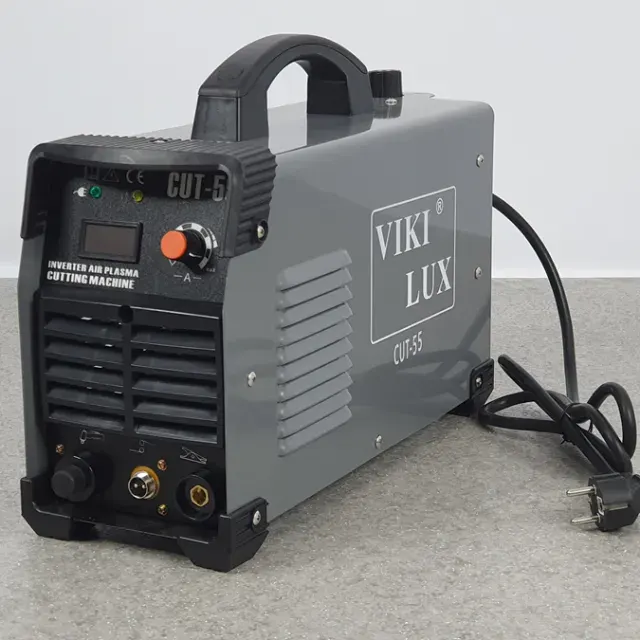 Кабел маса. Действие с дистанционно палене 3 дюзи 3 циркониеви електрода 2 керамични шапки за плазмата. Вграден манометър за конденз и налягането. В резултат на специални свойства, като по-висока скорост и прецизност на контрол дават на устройствата отлично качество при рязане. VIKI CUT 55 е машина за индустрията, занаятчийски и частни работилници и други.