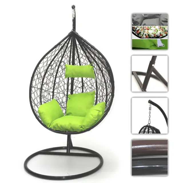 Градинската люлка е изработена със стабилна и здрава конструкция от PVC ратан и метал, и има меки възглавници за оптимален комфорт. Компактна и лесно преносима, може да се постави в градината или на терасата. Люлката е уникално предложение за кът за отмора и релакс. Състои се от стабилна метална стойка, на която се закача изплетената от ПВЦ ратан люлка, наподобяваща уютно гнездо. Допълнителните меки възглавници още повече предразполагат към пълноценна и възстановяваща почивка.