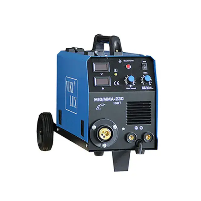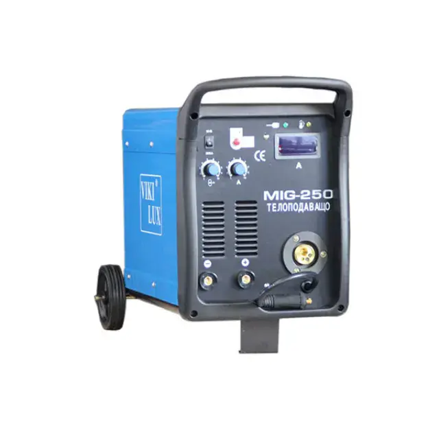 VIKI LUX MIG/CO2-250 А серия SNY – професионален инверторен заваръчен апарат с вградено телоподаващо устройство и електрожен. С него се заваряват всички черни метали, алуминий, неръждавейка, чугун, бронз и месинг.